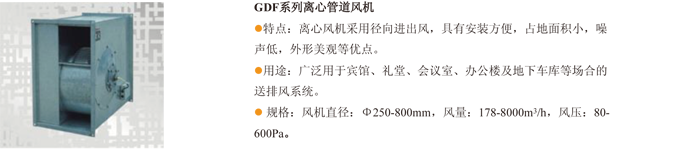GDF 系列低噪聲離心管道風機