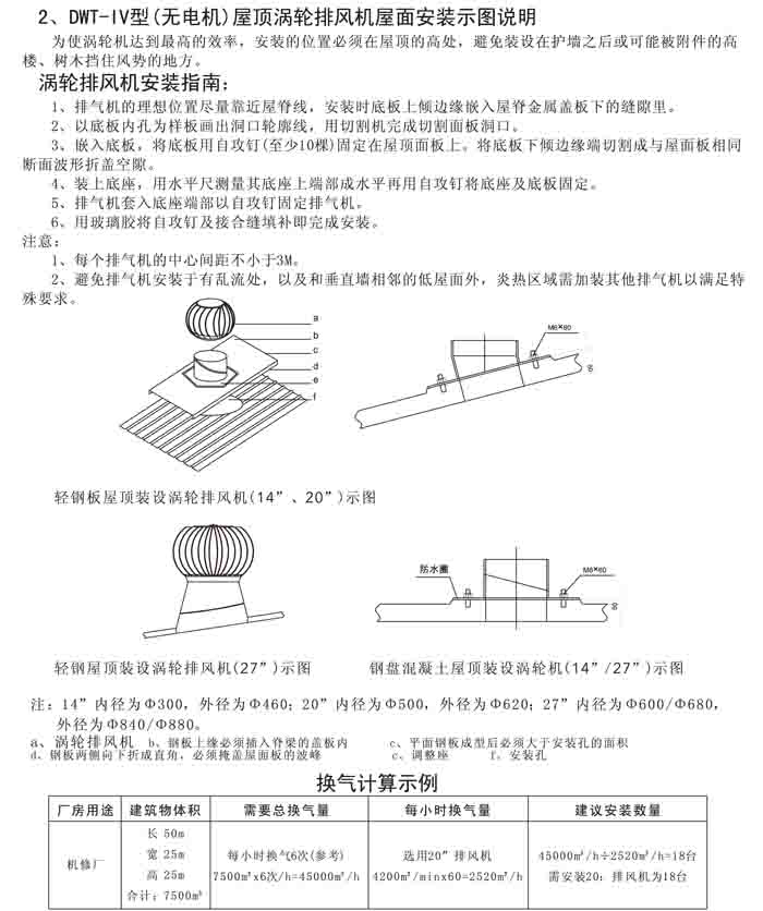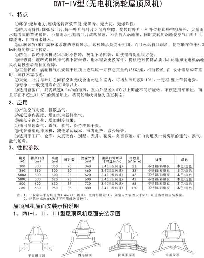 三、DWT-IV 系列無電機渦輪屋頂排風機